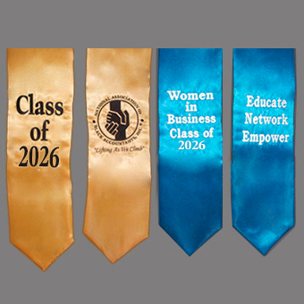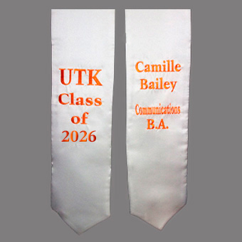 We embroider your name, school’s initials, class of 2025 on one side of stole and your Greek organization and chapter letters on opposite side. To meet demands for the rush graduation season and keep cost down, embroidery is done on pre-sewn satin stoles, so embroidery thread is visible on the reverse side of the stole. However this will not be seen when draped over your graduation gown/robes.