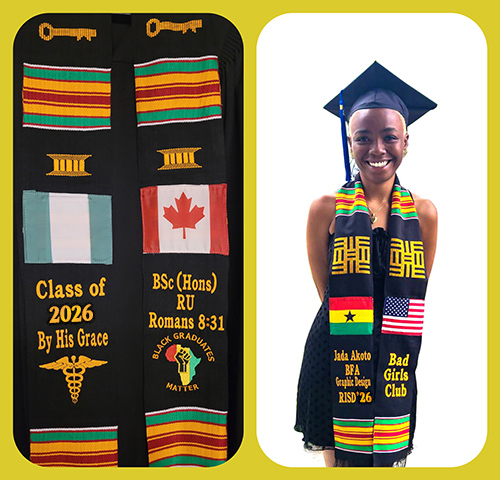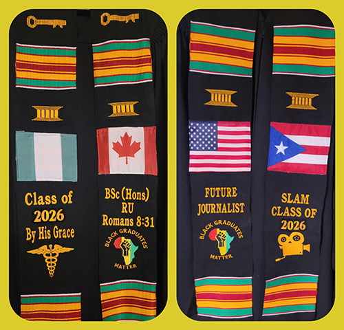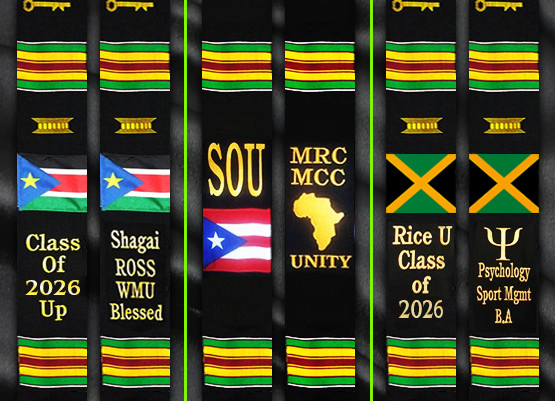Personalized Embroidered Kente Stoles with African, Caribbean & International Flags